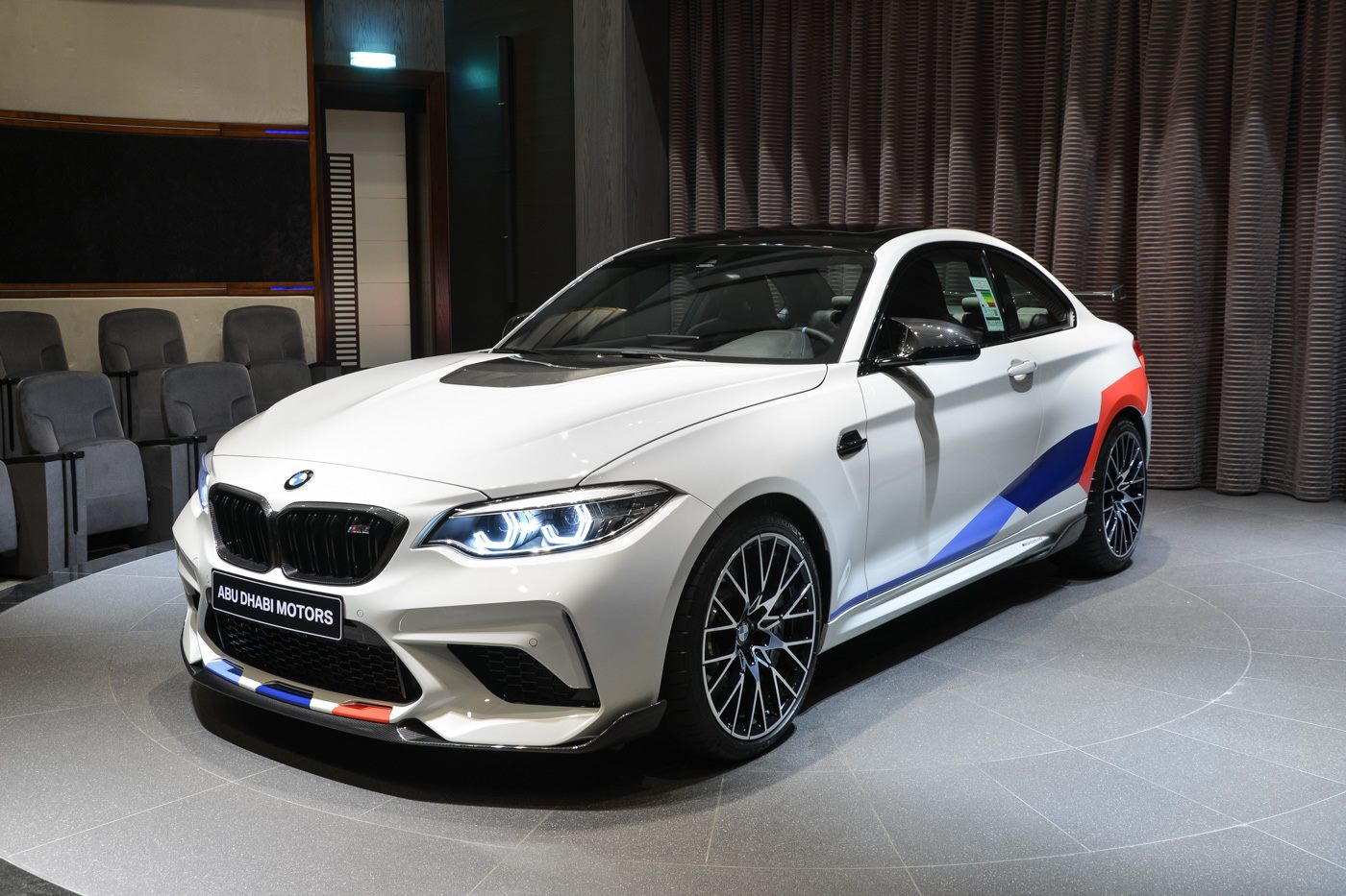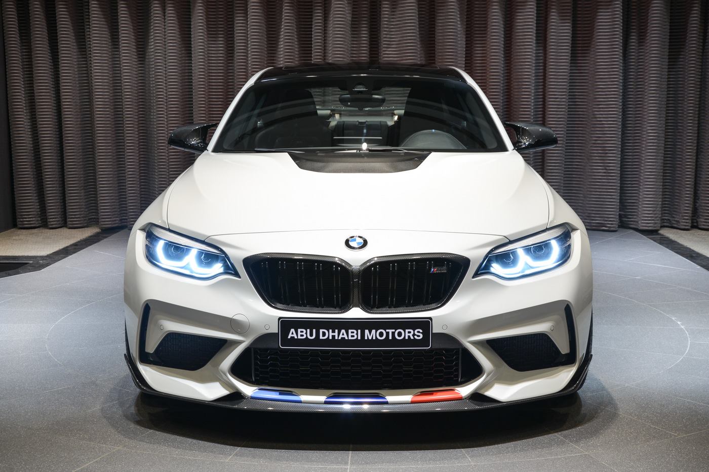 Im vollen M Performance Tuning-Look präsentiert sich ein neuer BMW M2 Competition von Abu Dhabi Motors. Das Showcar für arabische Kunden auf der Suche nach einem besonders potenten Kompaktsportler trägt so gut wie alles, was der Teilekatalog für den M2 bereithält. Die weiße Lackierung wird daher nicht nur mit vielen Akzenten in Sicht-Carbon kombiniert, sondern auch mit einer auffälligen Dekor-Beklebung in den Farben von BMW Motorsport.